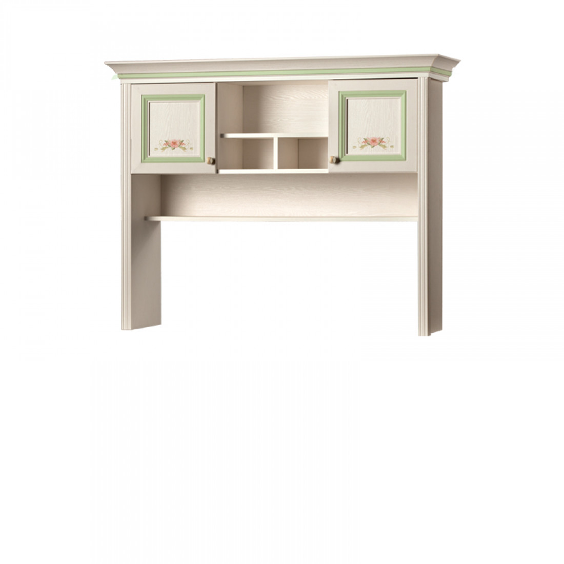 Фасады: МДФ, декоры – ясень белый, патина, рисунок, зеркало с фацетом
