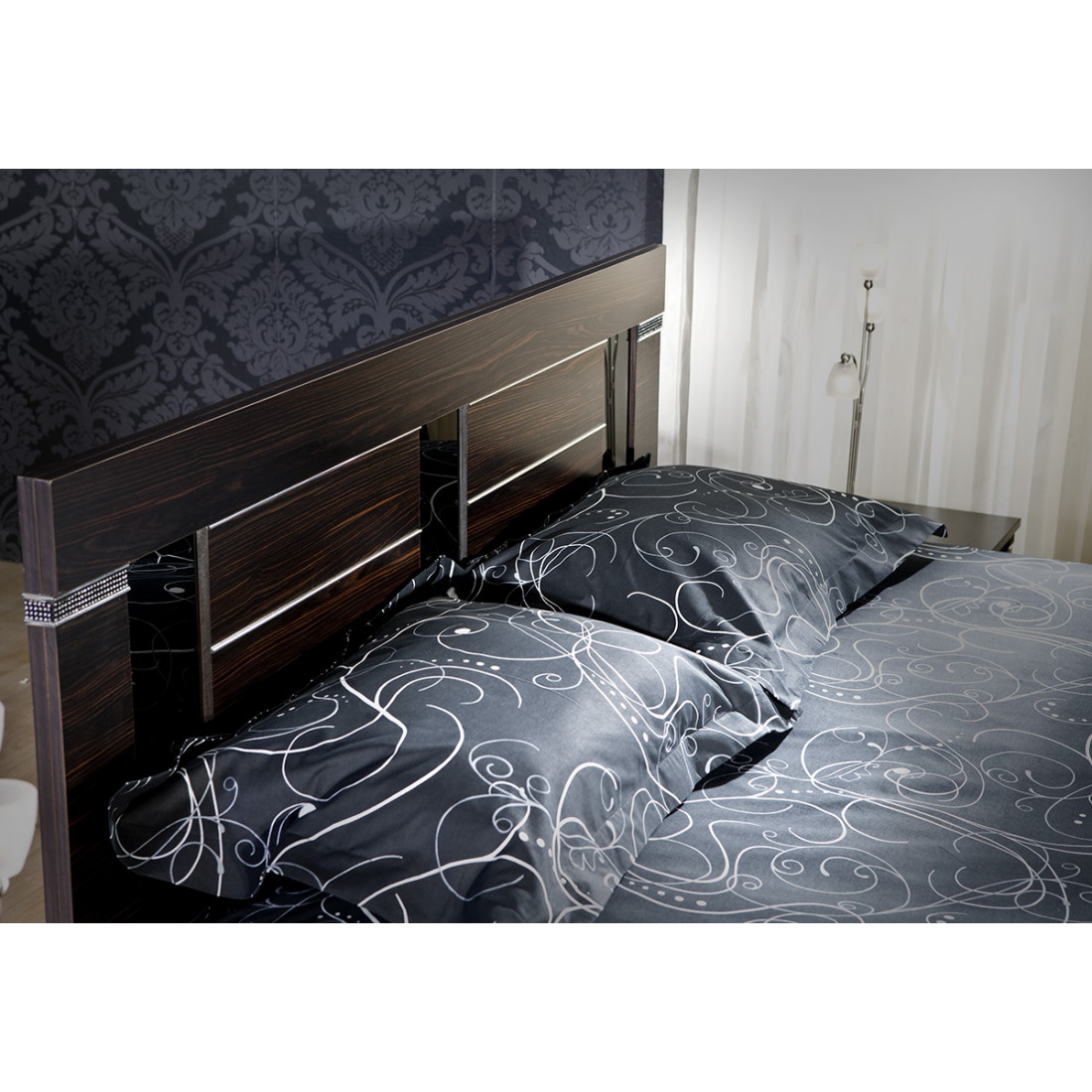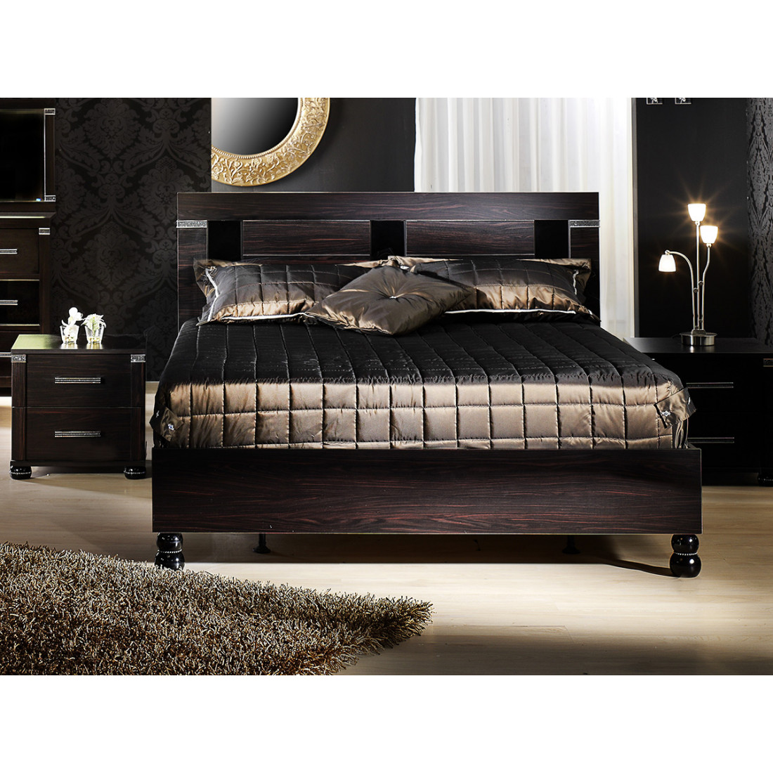 - стразы украшают декоративные уголки спинки и ножки кровати;
