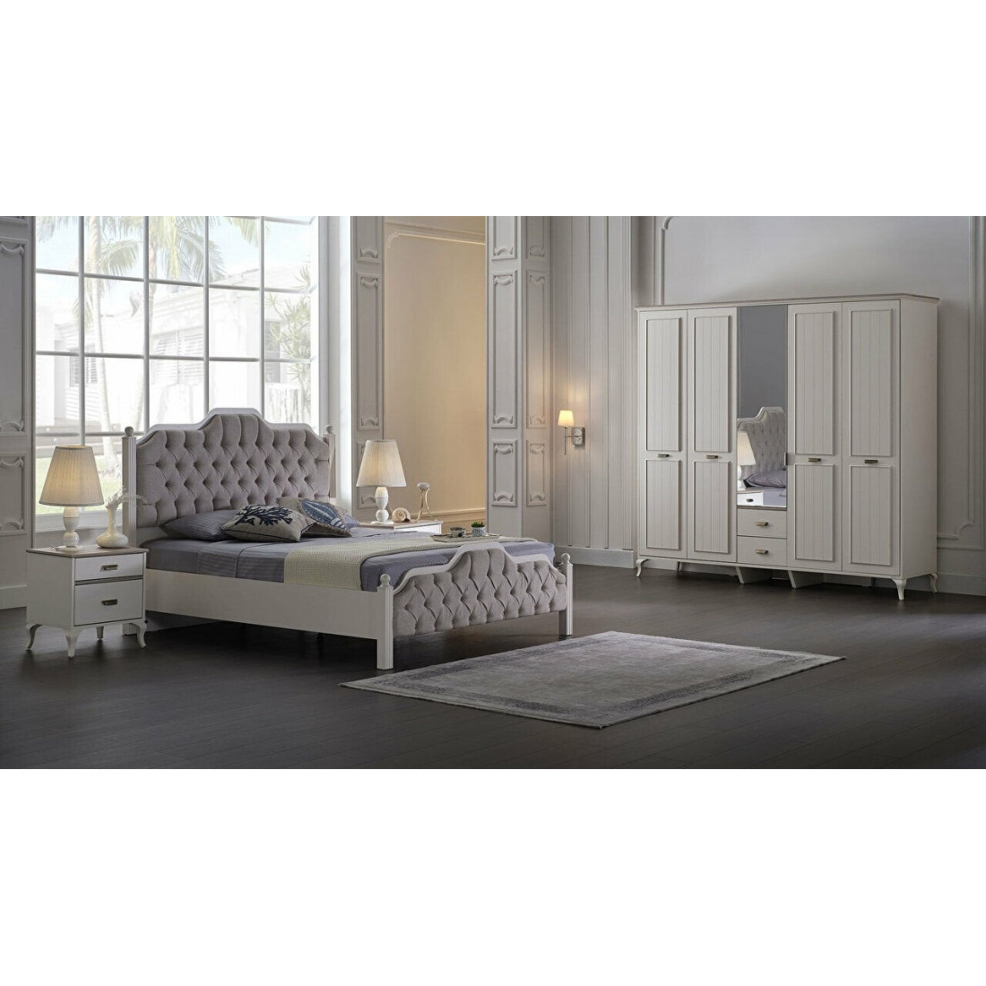 Пятистворчатый распашной шкаф для одежды и белья с зеркалом в спальню Andera (Андера) Andr-33