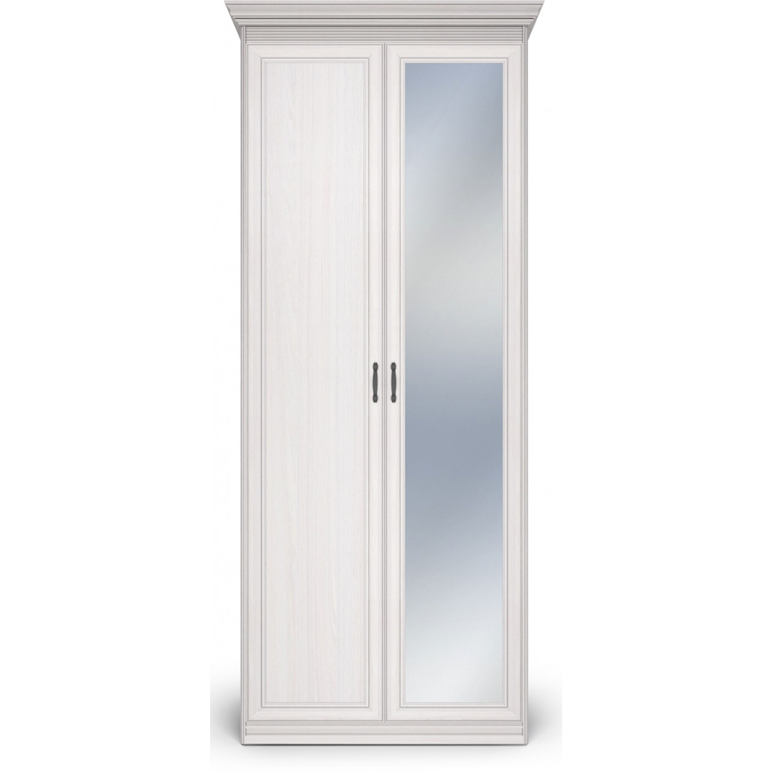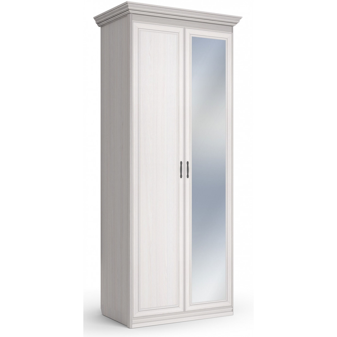 Шкаф 2-х дверный с глухой дверью и зеркальной Неаполь Ясень анкор светлый (патина "серебро")