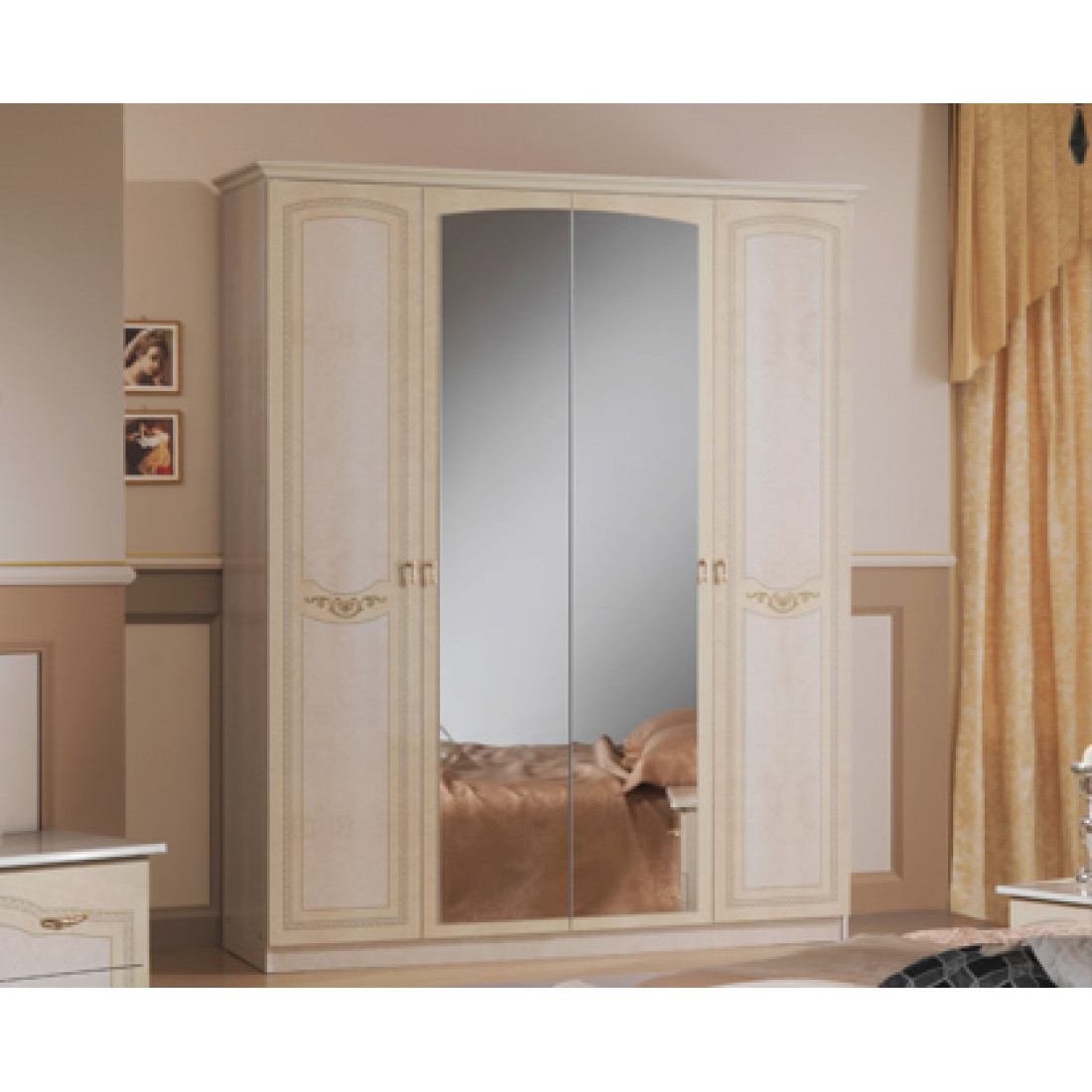 Спальня Ирина (беж) от Российской фабрики «ДИА мебель» выполнена в элегантном бежевом цвете в сочетании с глянцевым покрытием. Такая спальня поможет Вам насладиться прекрасным сном, забыть обо всех проблемах и окунуться в атмосферу роскоши и комфорта. Все модули этой композиции украшены резными вставками и росписью на фасаде. Без шумные дверцы и полки помогут вам забыть про неприятный шум по утрам. Коллекция "Ирина" предназначена для настоящих ценителей классического стиля.